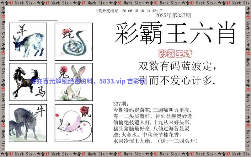 337期:正版彩霸王:双数有码蓝波定,引而不发心计多。 看生肖:今期送蓝波开的生肖 七肖:龙鸡牛兔羊虎蛇 |